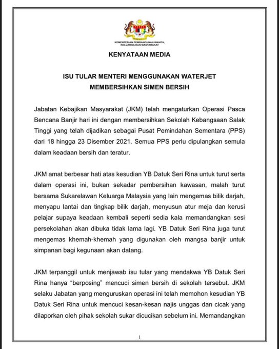 Bfm News Newsbfm 1 The Social Welfare Department Has Denied Allegations That Kpkwm Minister Rina Harun Was Merely Posing For A Photo When Spraying Down A School S Seemingly Clean Cement Floor It Says She Was Cleaning Remnants Of Cicak
